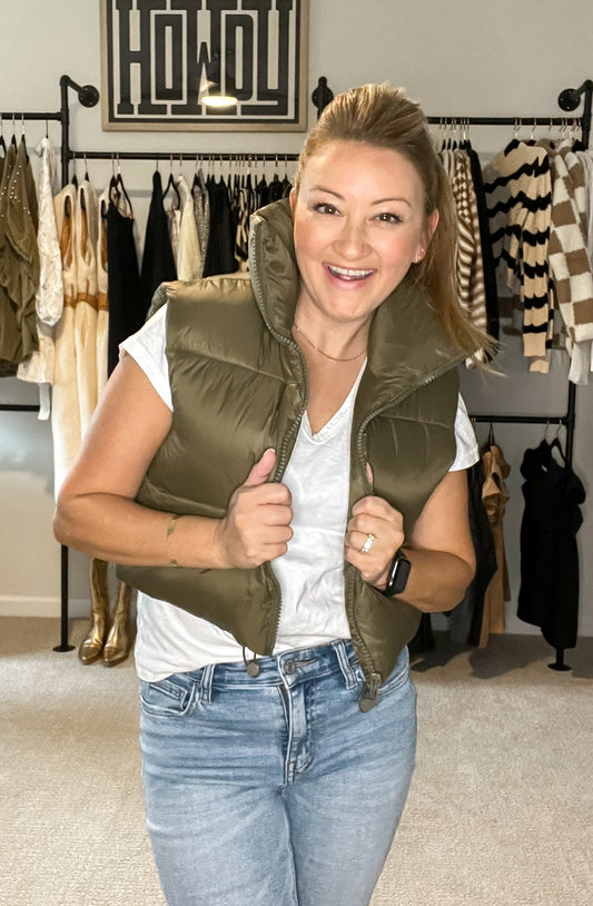 Cropped Olive Puffer Vest